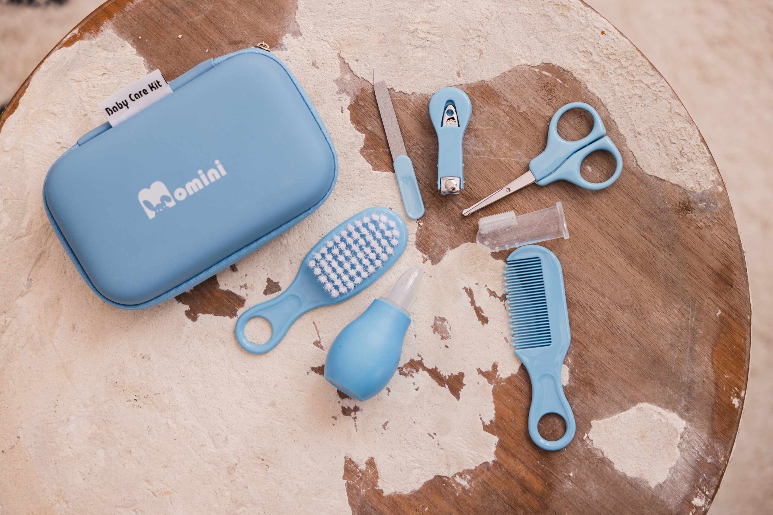 ⭐ Sky – Zestaw do pielęgnacji dziecka od Momini to kompleksowe rozwiązanie dla noworodków i niemowląt. Zawiera wszystkie niezbędne akcesoria, takie jak szczotka do włosów, obcinacz do paznokci, nożyczki, pilnik, pęseta, aspirator ręczny i szczoteczka do zębów. Wszystko zapakowane w praktyczny, łatwy do przenoszenia pojemnik, idealny do zachowania porządku.