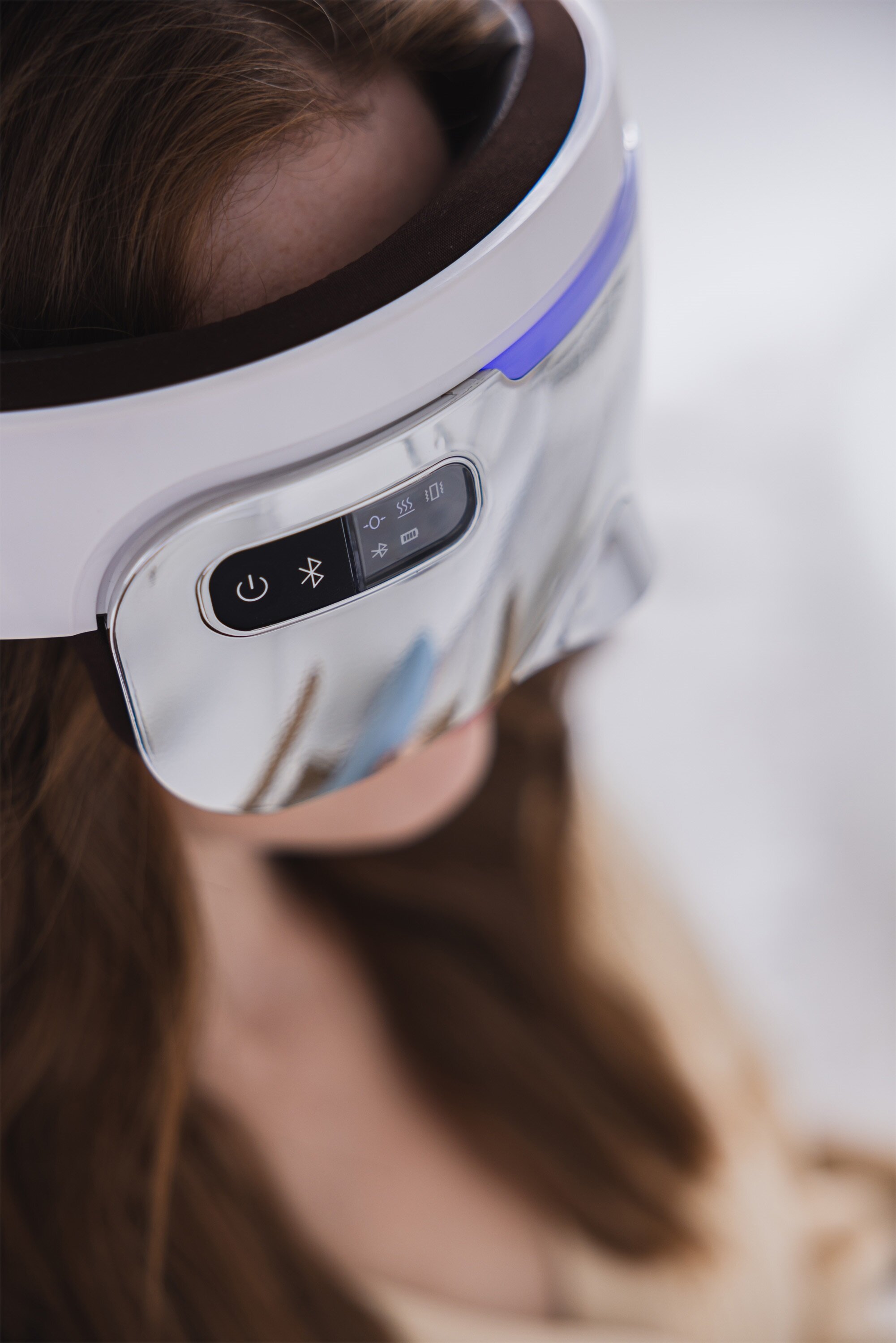 ➡️ Przezroczyste, smukłe okulary masażera zapewniają dodatkowe doznania w okolicach oczu, redukując zmęczenie i napięcie.