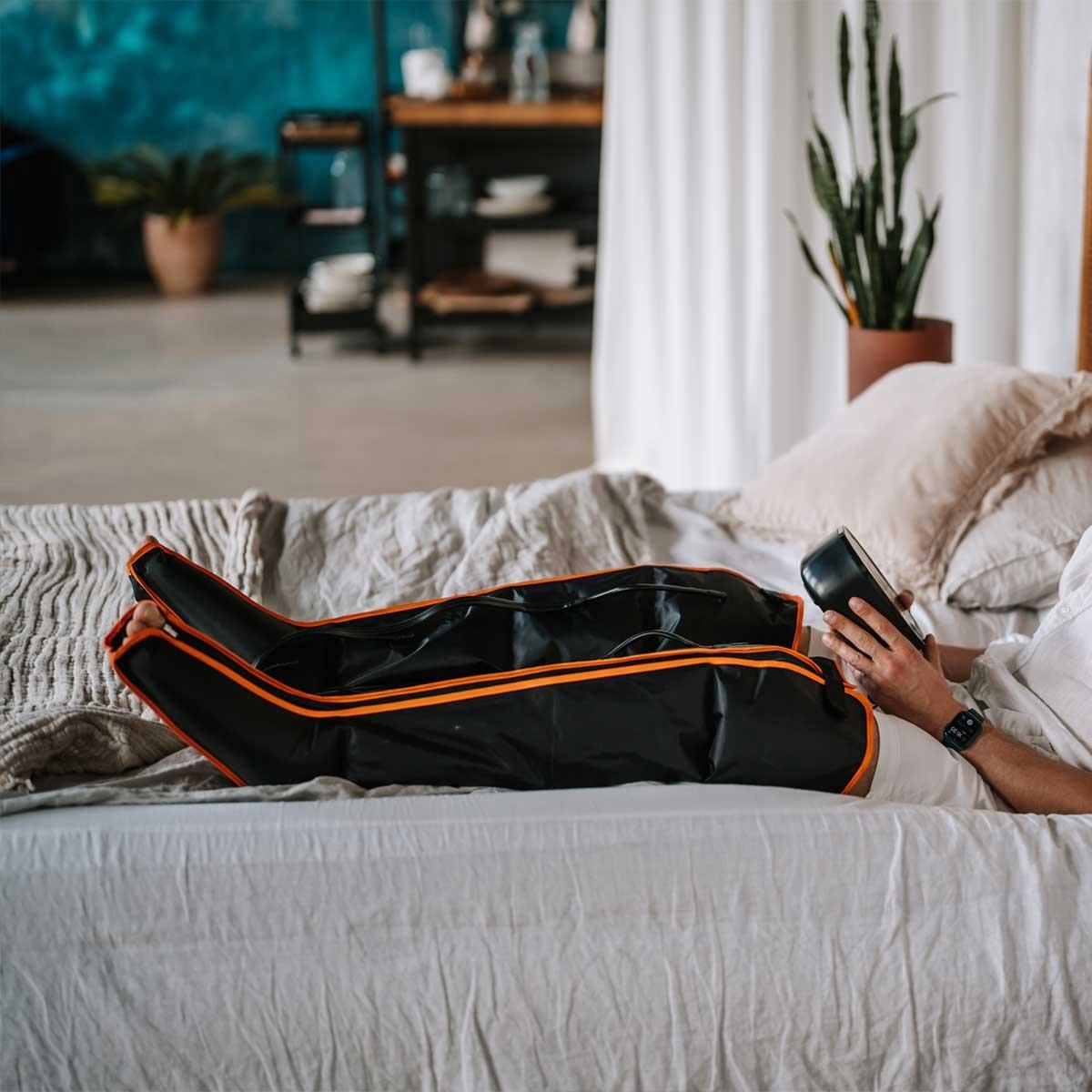 ➡️ Urządzenie zapewnia masaż usprawniający przepływ chłonki (limfy) dla przeciążonych nóg bądź ramion, w postaci naprzemiennego masażu uciskowego i ściągającego, aby w mgnieniu oka pobudzić do pracy układ limfatyczny i usprawnić krążenie krwi, oczyszczające ciało ze szkodliwych związków.